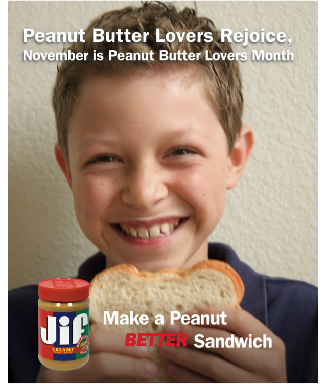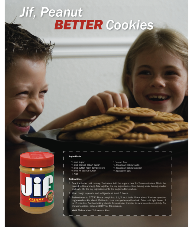 This mock campaign consisted of 2 print ads. It was centered upon simple, yet powerful copy. “Jif makes peanut, better.”